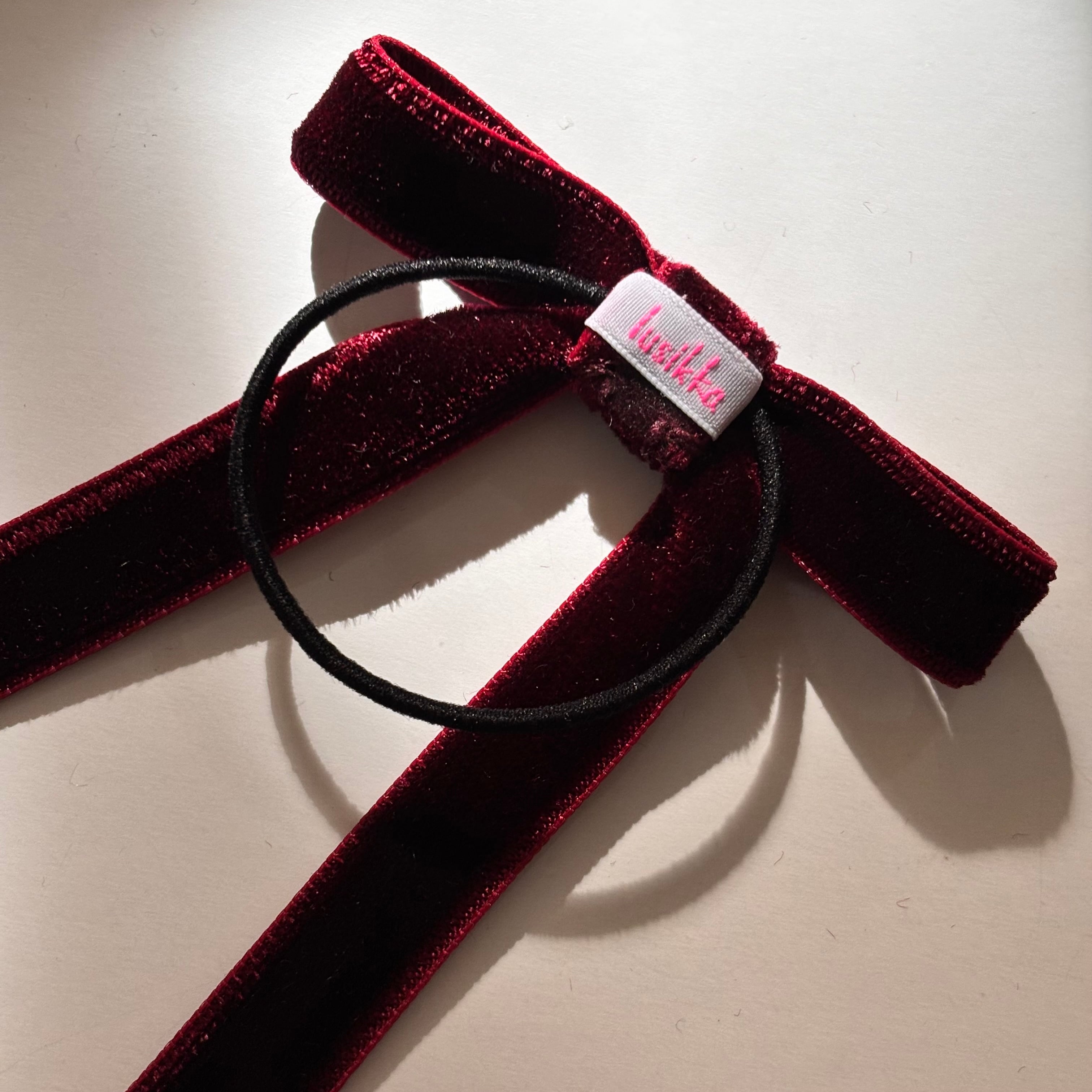 定番のベルベットのリボンのヘアゴムに